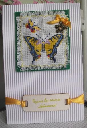 В продолжение темы вышитых бабочек получилось еще несколько открыточек