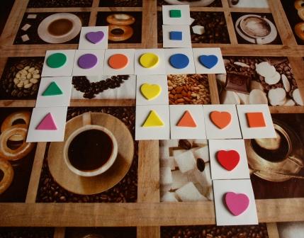 Zelya , а можно про последнюю игру по-подробнее? Я о такой вроде не слыхала. А мы что-то пока в Мемори не хотим играть, масечке не нравится что нужно фишки переворачивать. В этой игре 108 карточек. Всего 6 фигур 6 разных цветов, для каждой фигуры делаем 3 одинаковые карточки ( три желтых круга, три...
