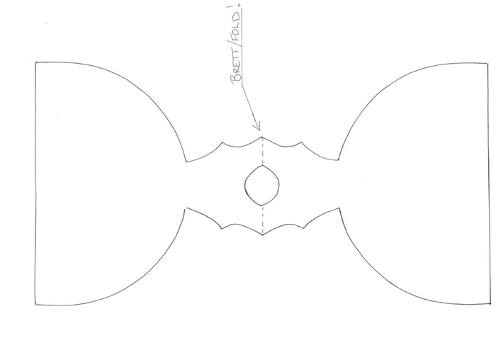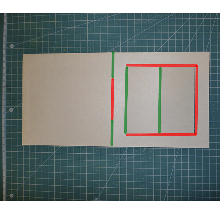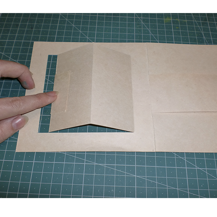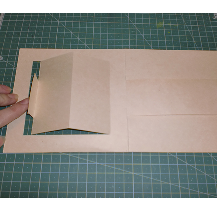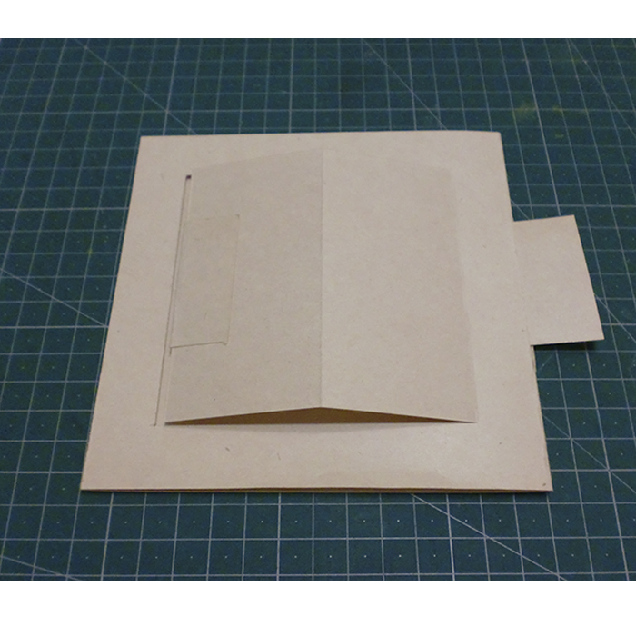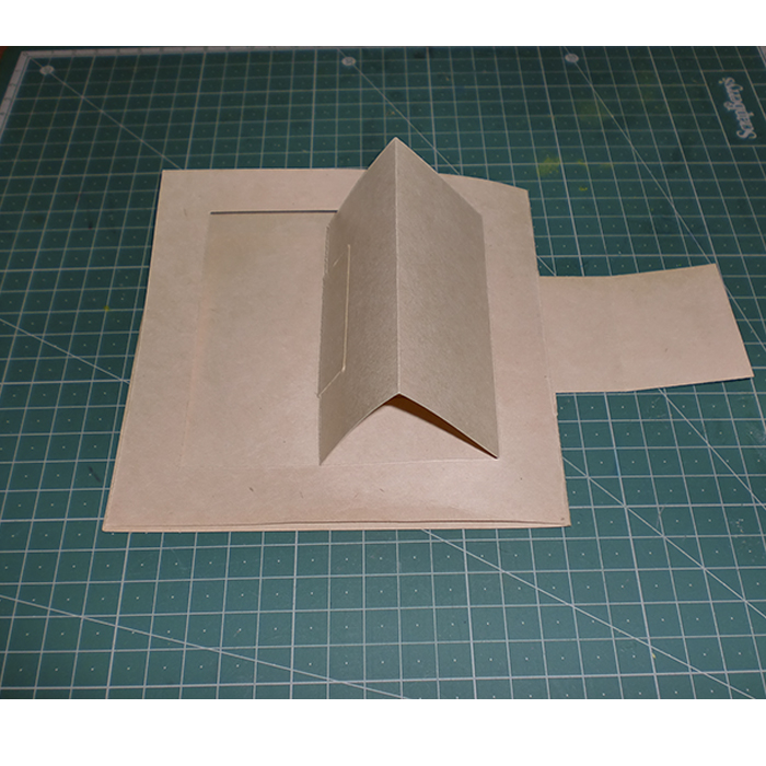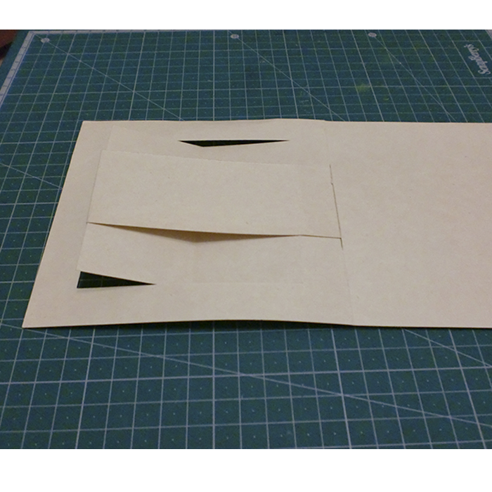 по красным линиям прорезаем, по зеленым сгибаем Еще нам нужно вырезать "язычок" - ту деталь за которую мы будем тянуть и открыточка будет трансформироваться. У меня ширина 5 см, а длину, лучше определим потом, сразу возьмем с запасом. "язычок" подкладываем под заготовку открытки. Один конец продеваем в отверстие, прорезанное на сгибе открытки, другой конец подгибаем, примерно 1 см и приклеивем, именно этот 1 см, к той части которая будет трансформироваться вот так заготовка выглядит изнутри теперь укорачиваем "язычок", чтоб он не сильно торчал, но за него можно было спокойно потянуть. теперь тянем за "язычок" и видим итоговый вариант нашей заготовки, который осталось задекорировать готовую открытку, сделанную по этому шаблону можно посмотреть viewtopic.php?p=9329#p9329