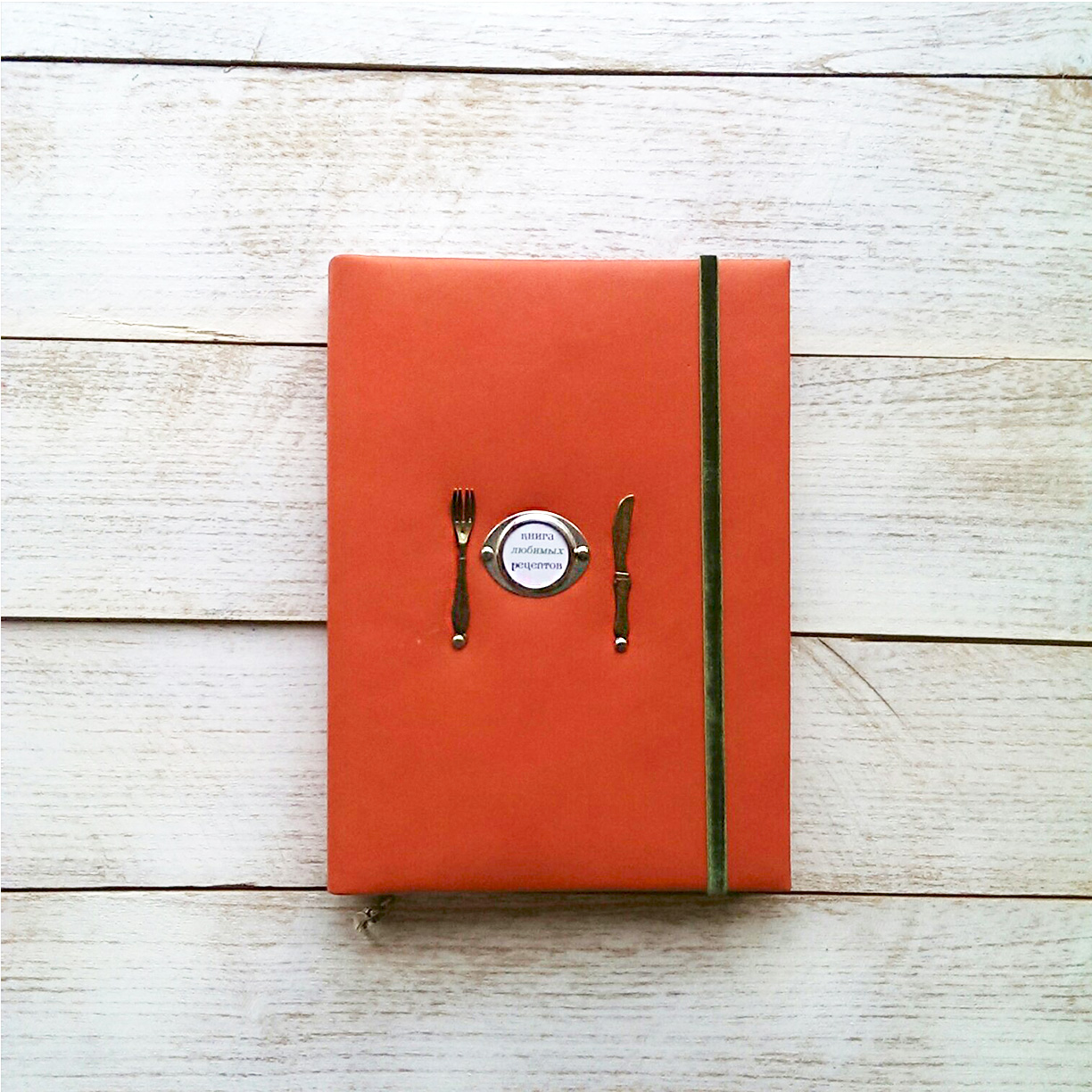 обложка кулинарной книги обтянута искусственной кожей апельсинового цвета...