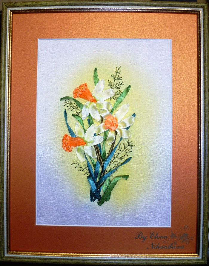 Картинку нарциссов брала из интернета, смотрела и вышивала, розочки сама придумываю