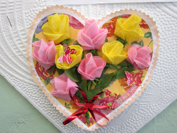 <span class="titlequote">Цитата:</span><span class="textquote">Открытка называется " Для мамочки - моей помошницы и защитницы". Розы сделаны из хозяйственных салфеток, бумагу для фона открытки сделали с помощью проглаживания бумажной салфетки с пищевой пленкой. [/quote]