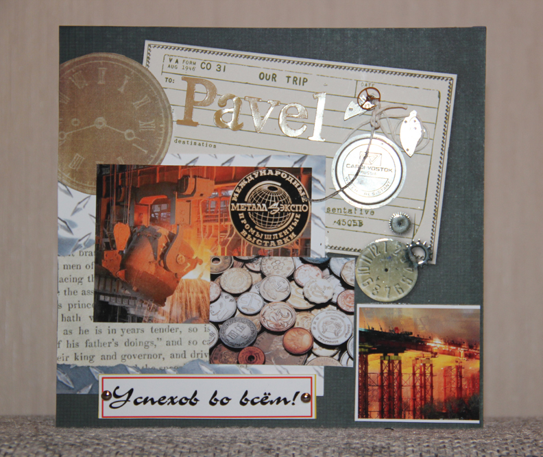 Вот моя открытка на Д.Р для преподавателя института Металлургического института Стали и Сплавов. Мне мужские открытки трудновато даются. Сейчас заказали строгую открытку без всяких финтифлюшек, но стильную. Просто рубашечка или галстук - это как-то избито. Может кто-нибудь что-то посоветует?