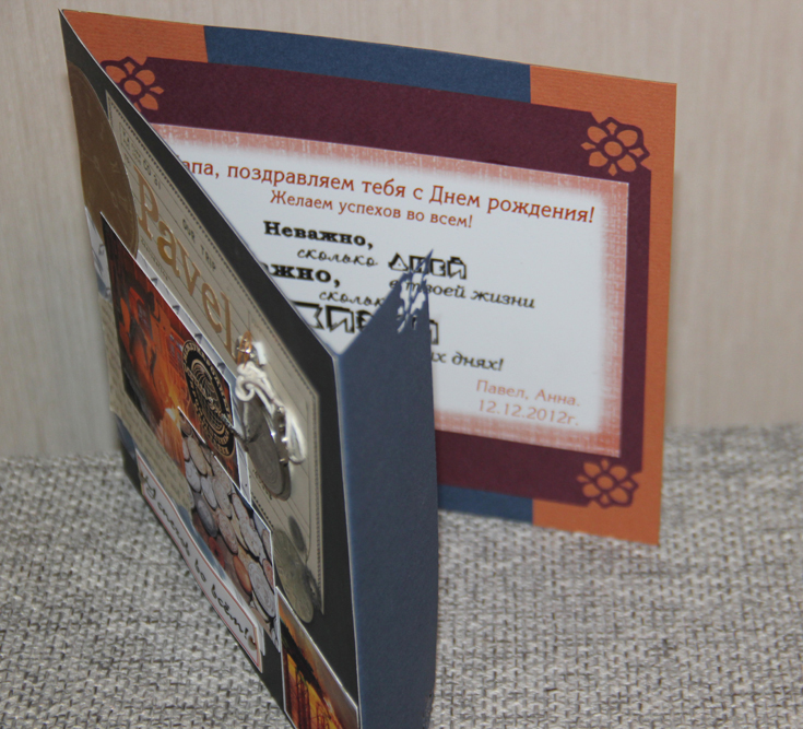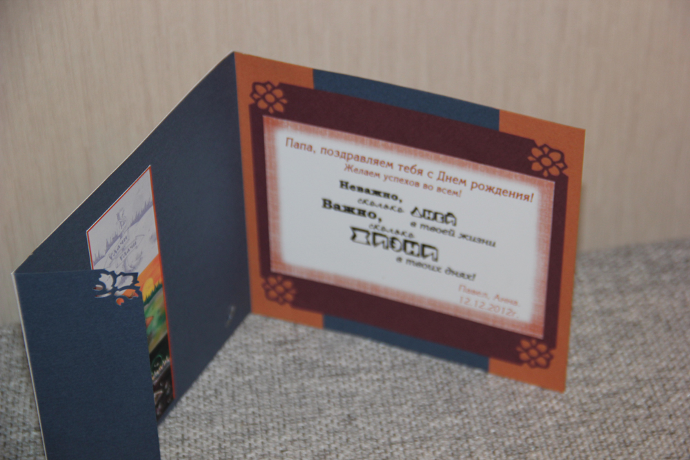 А у меня вот такая открыточка получилась мужу старшей дочери.