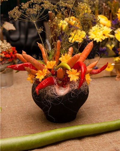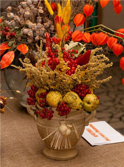 Очень симпатично. Жаль только, что такая композиция долго не простоит - натуральный материал быстро портится. Наверное, это можно использовать как временный декор конкретно для какого-то праздника. Или просто подарить, как букет цветов, цветы ведь тоже долго не стоят.