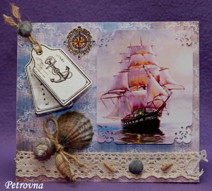 Пожелание: мне кажется фон с кораблем кое-где сливается с фоном картинки (может это и задумка, ничего против не имею...), я бы попробовала затонировать край листочка с кораблем.