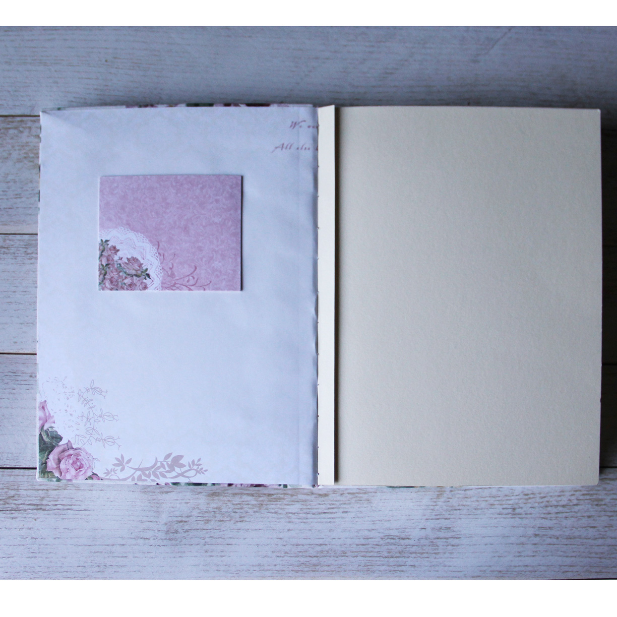 листы в альбоме чистые, их можно украшать на свой вкус, а можно просто фото в уголочках приклеить