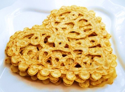 На 400 гр.муки-1яйцо,1ст.л сахара,соль по вкусу,40 мл.растительного масла,450 мл воды.Взбить миксером,перелить в пластиковую бутылку,в пробке которой сделать дырочку и рисовать прямо на горячей сковороде!