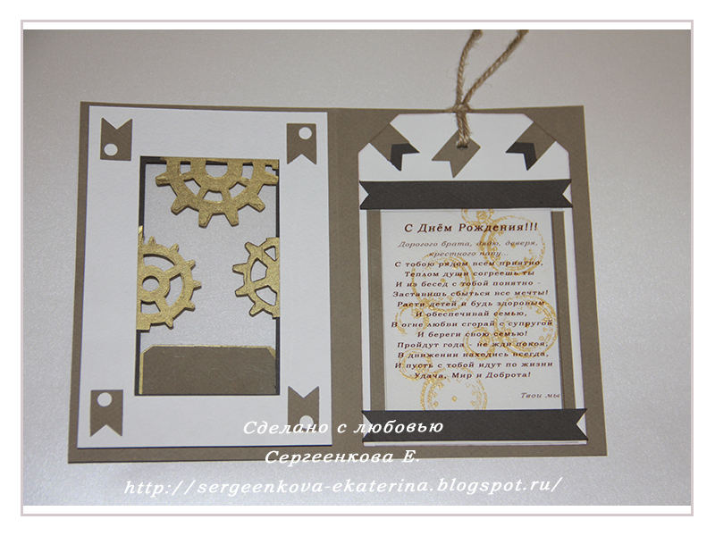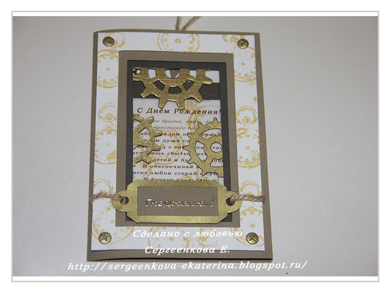 Катюша, браво!!!! Умничка, такие интересные открытки придумываешь, просто чудо! Шестеренки-это вырубка или дырокол?
