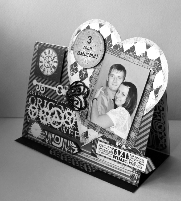 Открытка по просьбе младшей дочери.Пока не замужем, но 3 года вместе, собираются пожениться.Открытка в черно-белом варианте, давно хотела сделать в таких оттенках , но не было случая.А тут как раз дочь попросила именно в ч.белом.
