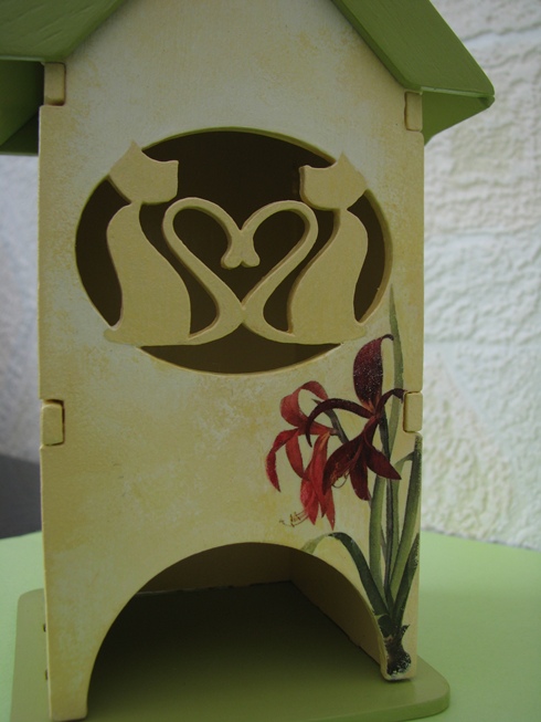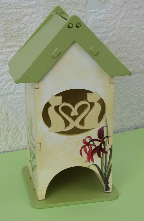 Чайный домик. Мой первый декупажик. На мой взгляд, ничего сверхестественного, но результат мне понравился. Фанерная заготовка покупная. Грунтовка, белая акриловая эмаль, колеры (у меня нет готовых красок, колеровала сама), декупажная карта (фрагменты вырваны), клей ПВА строительный, лак акриловый. Старить я его специально не стала, хотелось, чтобы был "свежевыкрашенный весенний домик" , а не "старенький скворечник". Не знаю, что еще написать, будут вопросы - спрашивате.