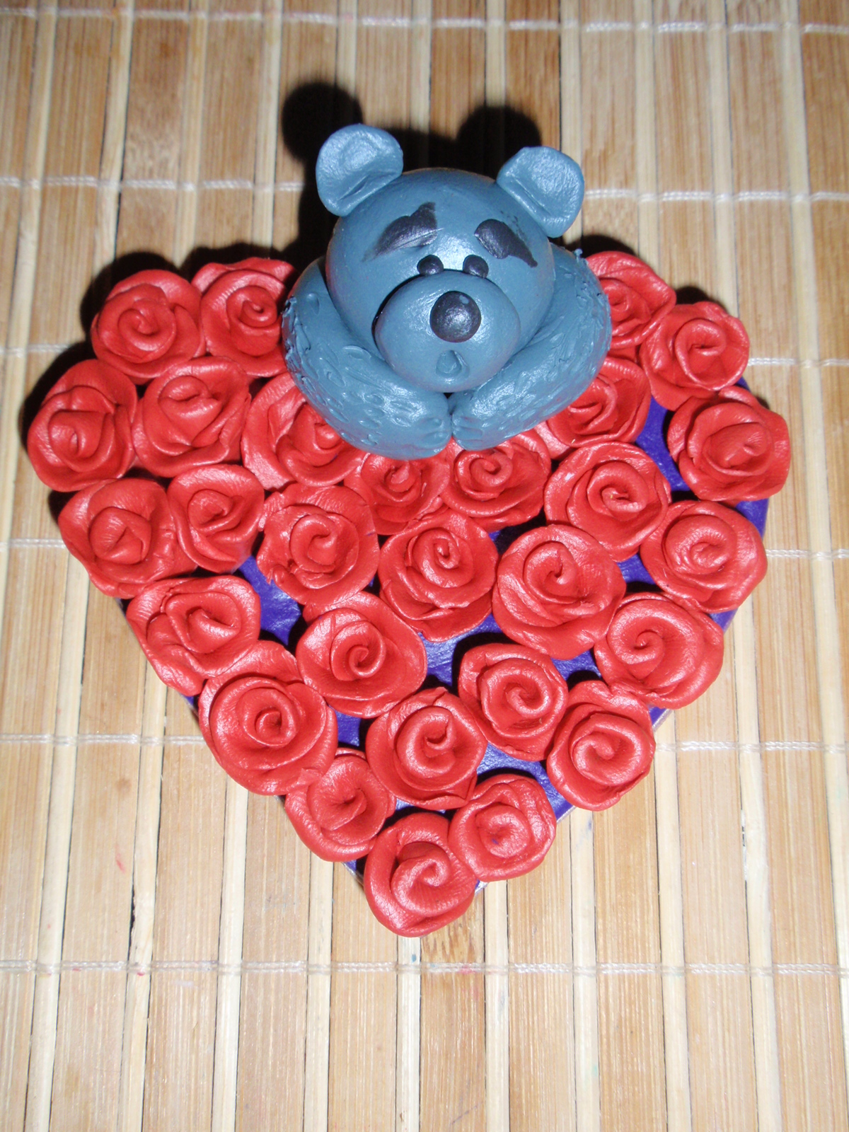 Идею мишки на сердце с розочками, подсмотрела на каком-то сайте, на каком не помню, сохранила только фото, это я так, на всякий случай, чтобы не обвинили в плагиате
