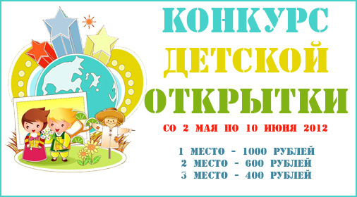 Сегодня, 2 мая 2012 года, у нас стартует первый конкурс - конкурс детской открытки, посвященный международному дню защиты детей - 1 июня.