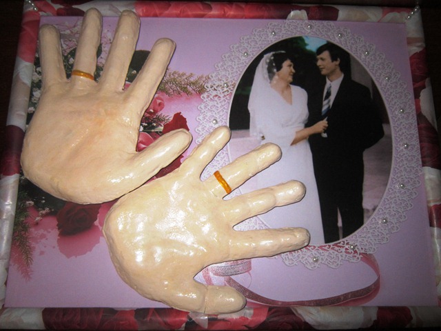 а это я делала подарок на Жемчужную свадьбу родителям мужа)))) руки в натуральную величину!