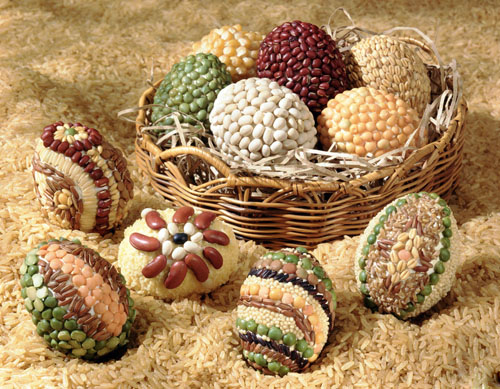 Вот первая поразившая меня идея - декорирование яиц различными видами круп. Это, конечно, очень кропотливая работа. Но оно того стоит!